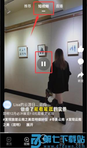 3、进入主界面后选择短视频类别,即可观看并对视频进行控制。