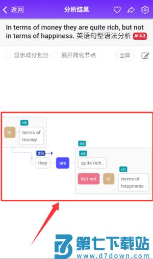 3、分析完成后,即可查看句子成分划分等详细语法结构解析。