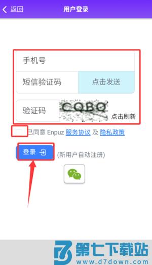 1、在登录页面填写手机号及验证码,勾选协议后点击登录完成验证。