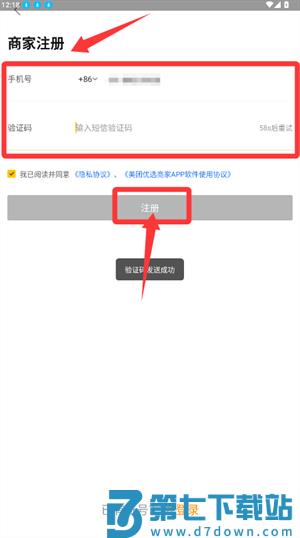 3、输入手机号与验证码,勾选协议完成账号注册。