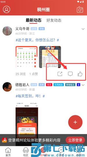 3、进入同城社区页面,可对帖子进行转发、讨论或点赞等社交互动。