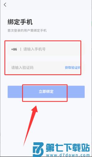 2、在绑定页填入手机号并获取输入验证码,点击立即绑定完成操作。