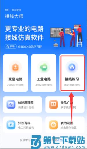 3、进入主界面选择接线练习功能,即可开始相关电路的模拟练习。