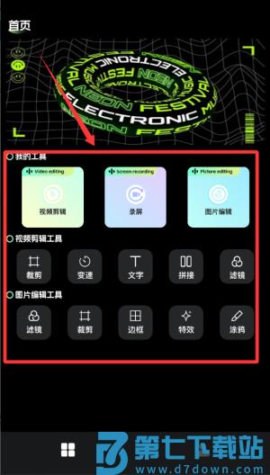 1、选择编辑模式:根据需求选择视频剪辑、屏幕录制或图片编辑等不同功能模式进入对应操作界面。