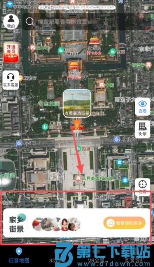 可查看当前道路以及家乡全景,还可通过搜索查询想到达位置的全景