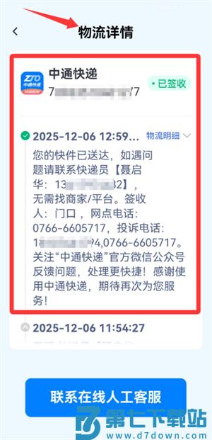 4、进入物流详情页面,可浏览当前运输状态与签收情况。