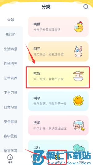 3、在主界面点击底部分类选项,进入分类页后选择吃饭类别。