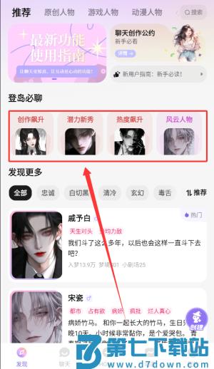 3、发现页面展示创作飙升榜、潜力新秀推荐、热度榜单及风云人物介绍。