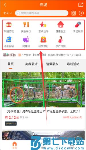 4、商城板块提供乐园门票、餐饮美食、亲子活动、健康生活及兴趣班报名。