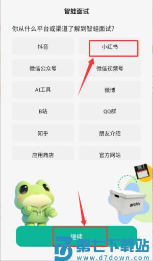2、登录后选取了解渠道例如小红书,点击继续进入面试准备界面。
