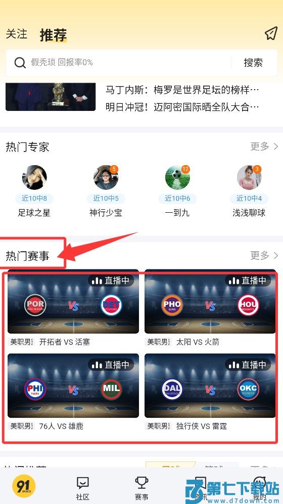 1、打开91体育应用后,您可通过搜索功能快速查找特定球队、球员或比赛场次相关信息。