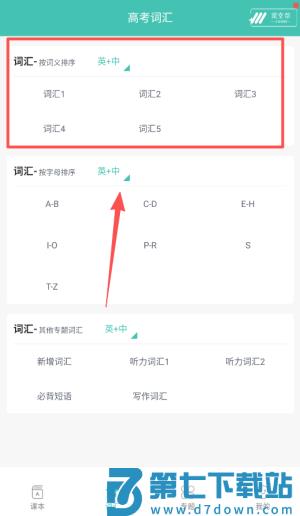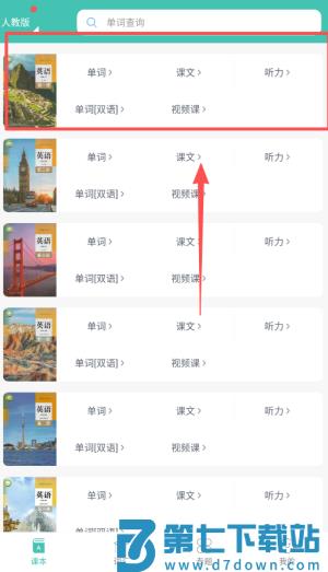 1、第一步打开软件后先根据教材版本和年级选择对应单词库,这样学习内容就和课堂进度完全同步了,确保学习的针对性。