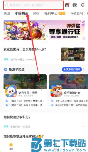 2、首页搜索框支持查找游戏、用户昵称及社区发布的各类图文内容。