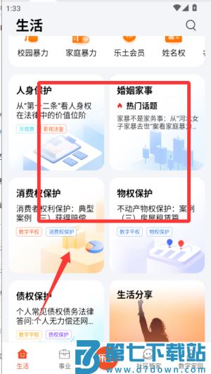 2、在首页选择法律咨询或法律援助服务根据自身问题类型进行提交。