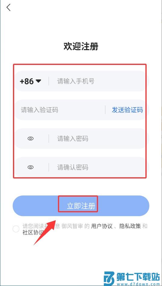 3、填写手机号码并输入验证码后设置个人专属登录密码。