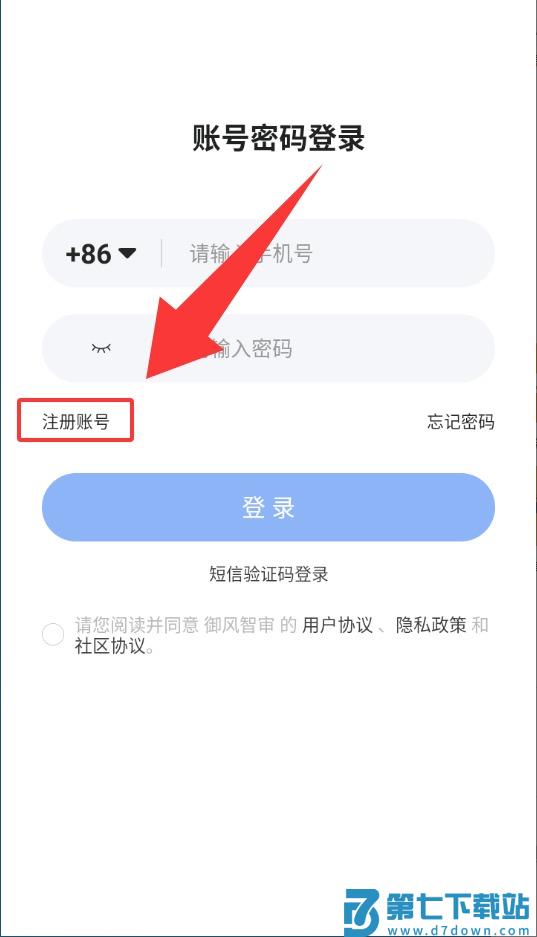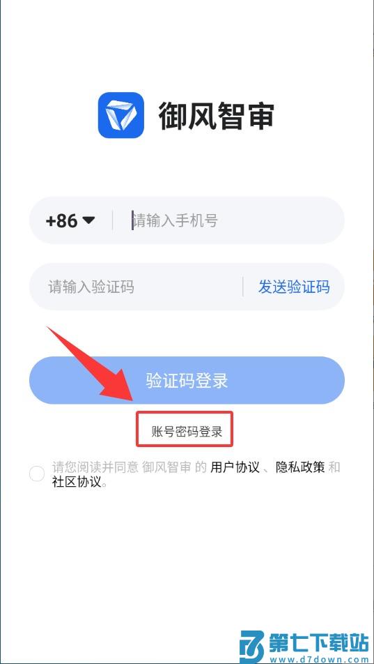 1、启动应用后选择底部账号密码登录入口进入登录界面。