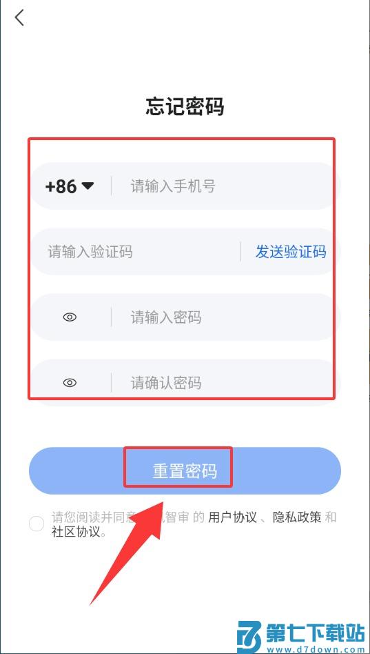 4、若需修改密码可通过验证手机号重新设定新密码完成重置。