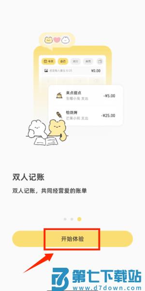 1、于隐私政策弹窗中点选同意,随后进入双人记账介绍页面。