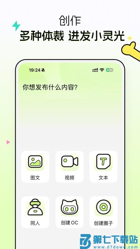 3.创作:图文、视频、文本、同人、OC多种发布器,随时记录你的小灵光