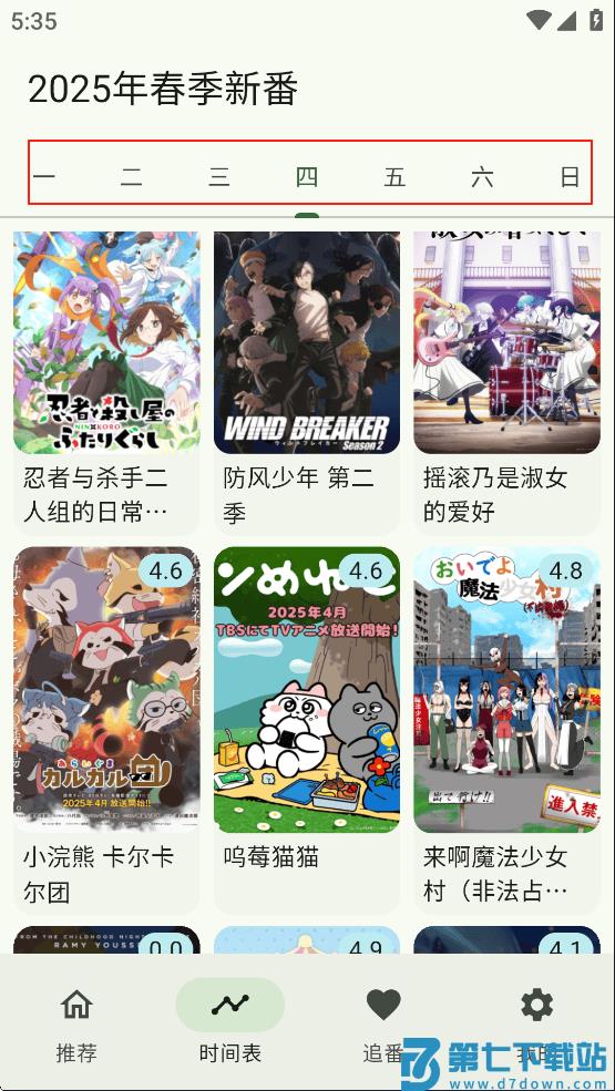 2、在“时间表”里面可以看到每一部番剧具体是周几更新,清晰明了。用户能够提前规划自己的追番安排,不会错过任何一部心仪番剧的更新,增加了追番的计划性。