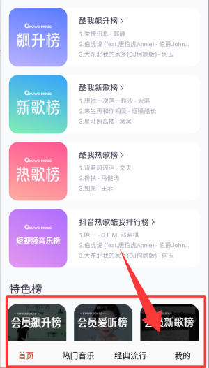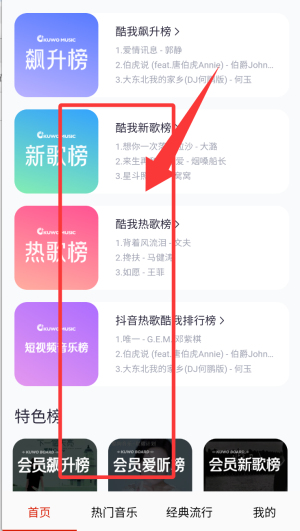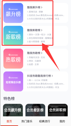 1、先在应用商店下载酷听音乐app,安装后打开,无需登录即可免费试听大部分歌曲。