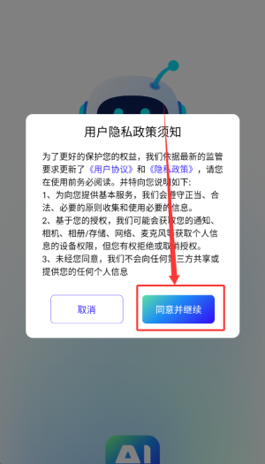 1、首次启动应用时需在初始界面阅读并点击同意选项以确认用户协议,随即顺利进入程序主功能页面。