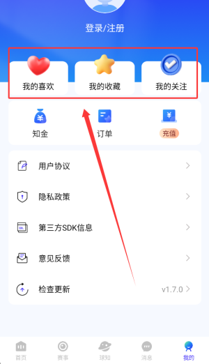4、我的个人中心能够管理用户标记为喜欢的比赛、收藏的深度分析报告以及持续关注的球队或联赛列表。