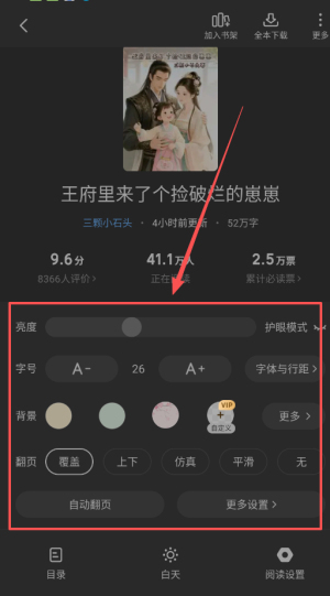 3、在阅读设置中,调整字体、背景色及排版风格,可以根据个人喜好优化阅读体验,打造最舒适的阅读环境,增强乐趣。