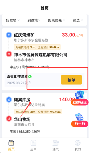 海量货源让用户随时都能在这里抢到自己满意的货源订单接单。