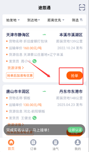 使用手机一键抢单,在手机端则可以随时随地的完成货源抢单