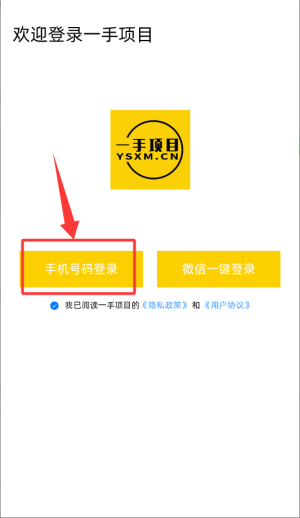 1、于一手项目服务协议弹窗点击同意并接受,确认条款后进入注册页面。