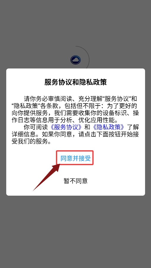 1、首次启动应用需点击同意用户协议和隐私政策,确认后方可进入登录界面。