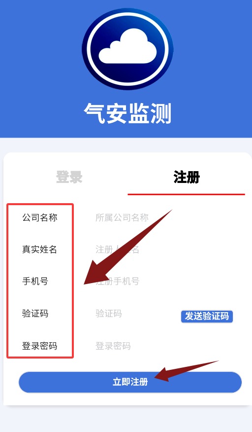 3、注册账号需填写公司名称、真实姓名、手机号、验证码与密码。