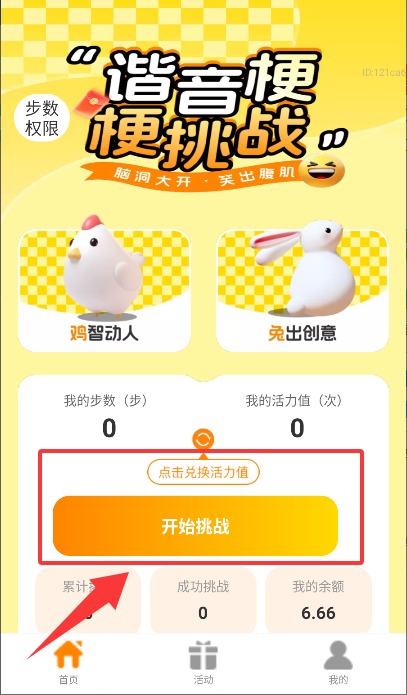 2、进入主界面后,屏幕中央设有“开始挑战”的显眼入口,点击这里便能立即进入限时的谐音梗答题环节。