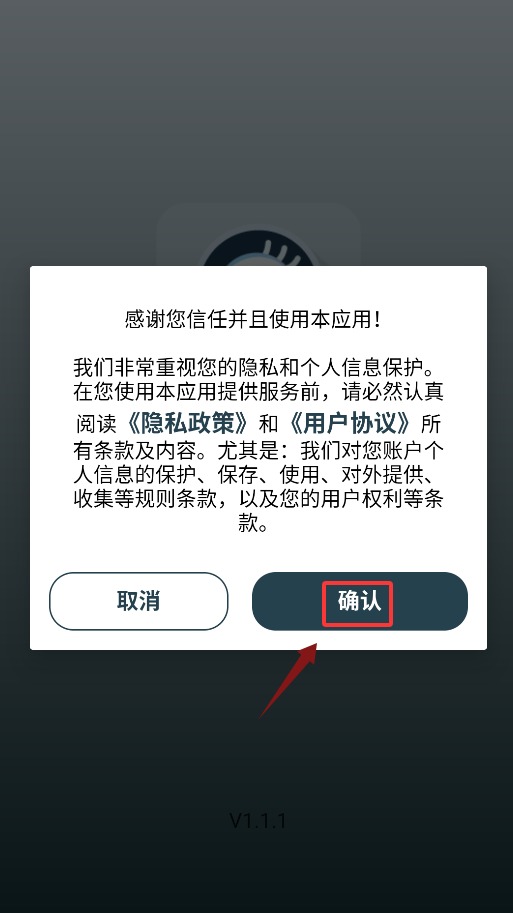 1、首次启动应用需点击确认协议弹窗,同意后方可进入主界面。