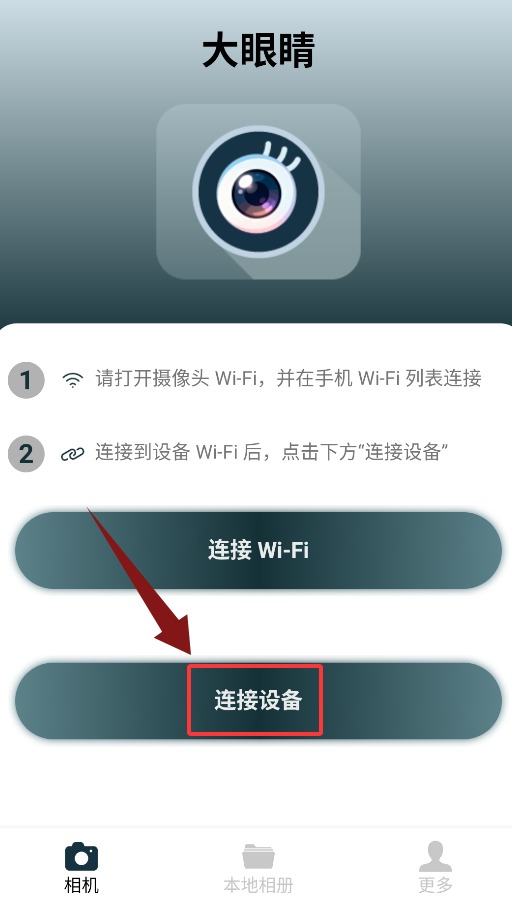 2、在相机界面点击下方“连接设备”按钮,进入设备配对流程。