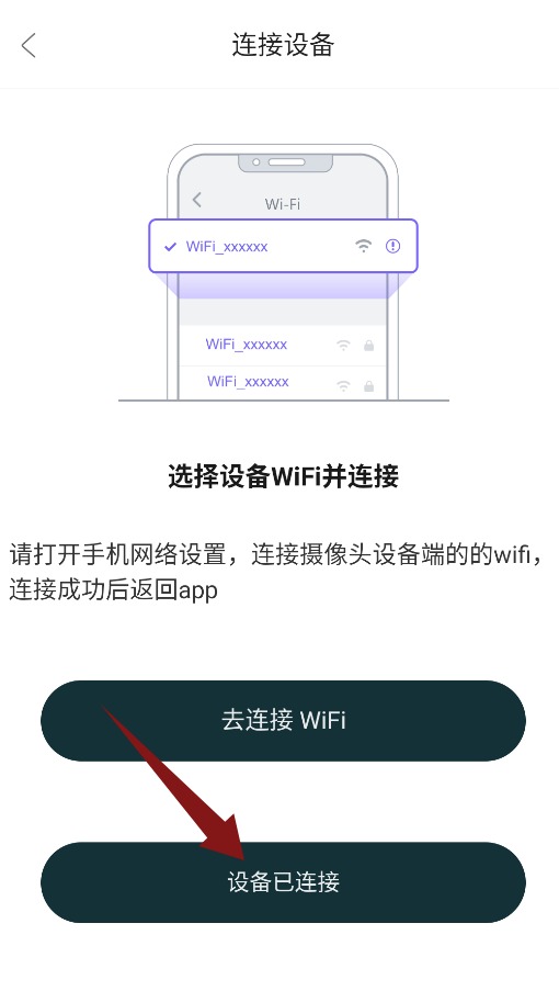 3、连接界面选择设备Wi-Fi并完成连接,点击“设备已连接”确认。