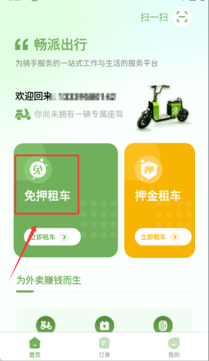 可以通过软件租用电瓶车,这样就可以让外卖骑手轻松租车;