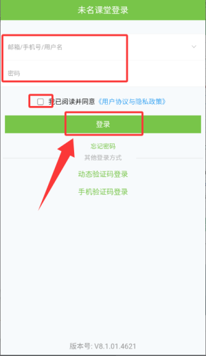 3、于登录界面填写账号密码,勾选协议选项后点击登录完成身份核验。