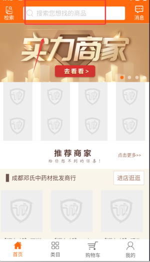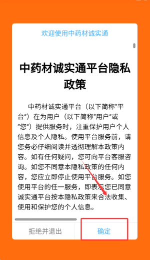 1、阅读并确认服务协议,点击进入药材商城功能主操作界面。