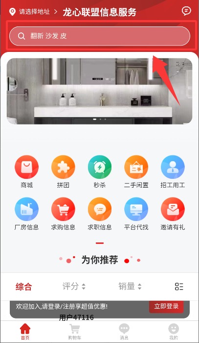 龙心联盟专为家居行业设计,集商城购物、招工招聘与厂房租赁等功能于一体。平台提供丰富的家居商品信息与图文展示,支持用户便捷选购,并常设优惠活动。此外,企业可发布招聘需求,求职者能快速匹配岗位,厂房租赁板块也提供大量资源。