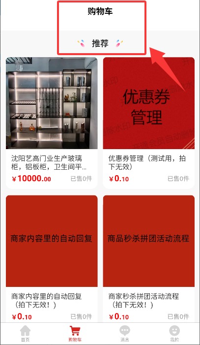 4、底部导航栏设有购物车图标和“为你推荐”板块,便于随时查看已选商品与发现新品。