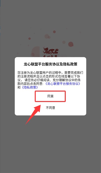 2、初次启动应用时,请点击屏幕上“同意”按钮,完成服务协议与隐私政策的确认。