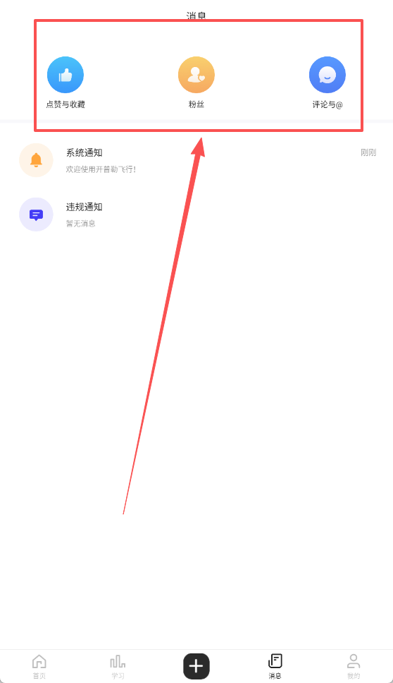 3、可以在消息内查看点赞与收藏、粉丝、评论与@等信息,查看系统通知等信息。