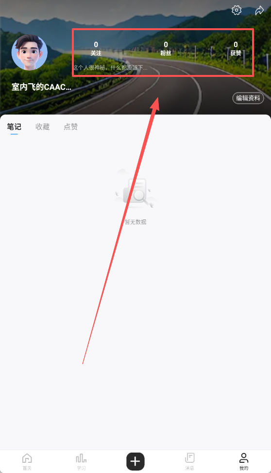 4、可以在我的信息内查看自己关注和粉丝获赞等信息,发布自己的笔记等信息,更好的跟朋友互动。