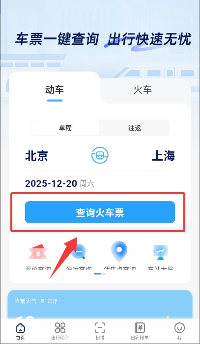 高铁票快易查整合了车票查询、在线购票、天气服务与记账工具等多项实用功能,致力于为用户提供覆盖行程规划、购票操作、旅途协助与财务管理的全流程服务,让高铁出行变得更加智能、轻松且有条理。