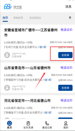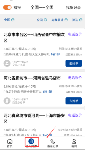 3、浏览当日发布的货源列表,了解最新运输需求详情。