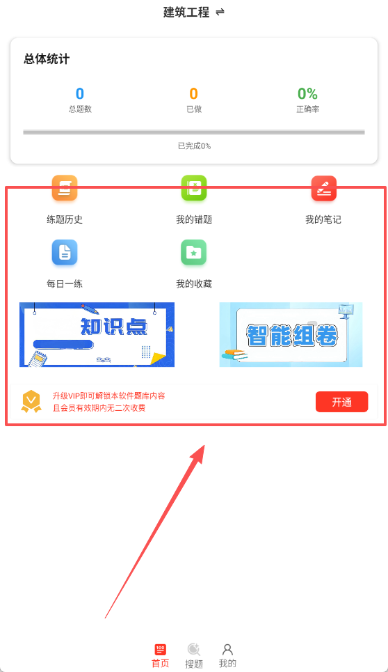 3、可以在搜题页面选择自己需要学习的类型进行学习,也可以搜自己不同的内容查看详细信息。