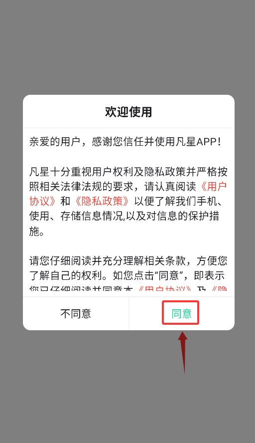 1、首次启动应用需点击确认弹窗协议,同意后方可进入主界面。