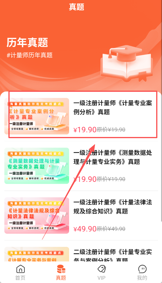 3、可以在真题页面查看历年的真题,也可以花钱购买最新的题目。